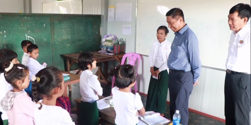 They then visited No.8 Basic Education Primary School in Aung Pan and viewed the construction progress of school building, funded by the ASEAN, through coordination with AHA Center.