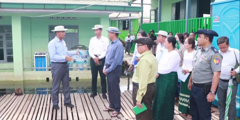 They also inspected the progress of constructing temporary school building at Basic Education Branch High School (Kaylar) in Nyaung Shwe Township. The Union Minister then visited the Inle Phaung Daw Oo Pagoda and viewed the progress of renovation works being carried out by the provision of National Disaster Management Committee.