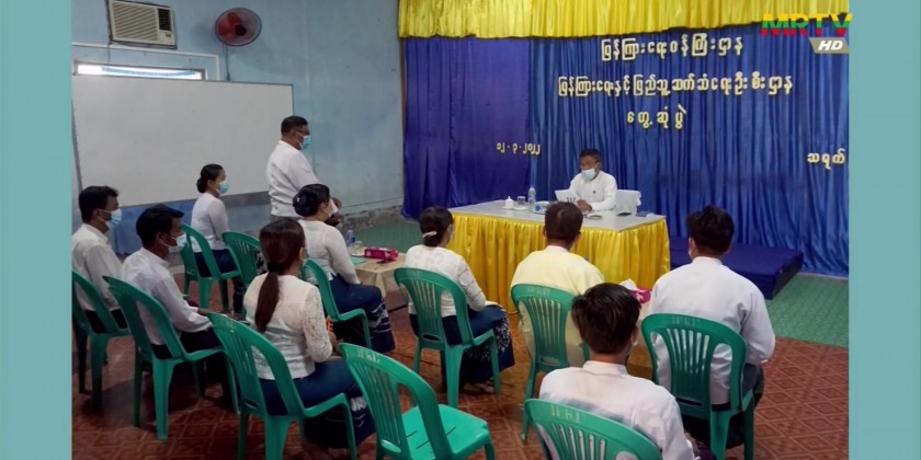 Deputy Minister for Information U Ye Tint met an assistant director and staff from Thayet District Information and Public Relations Department, Magway Region and township heads from Sinbaungwe, Kanma and Mindon townships, followed by giving instructions and inspected the Kanma township IPRD office on the morning of 12 March.