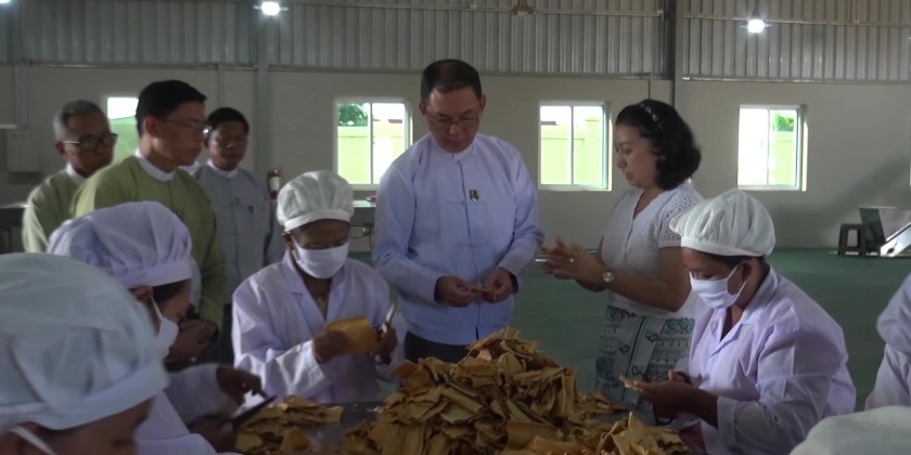 Union Minister for Natural Resources and Environmental Conservation U Khin Maung Yi conducted an inspection of the dried bamboo shoots production and export operations at the Nareindra Agricultural Value-Added Products Manufacturing facility in the Dekhinathiri Industrial Zone, Nay Pyi Taw.