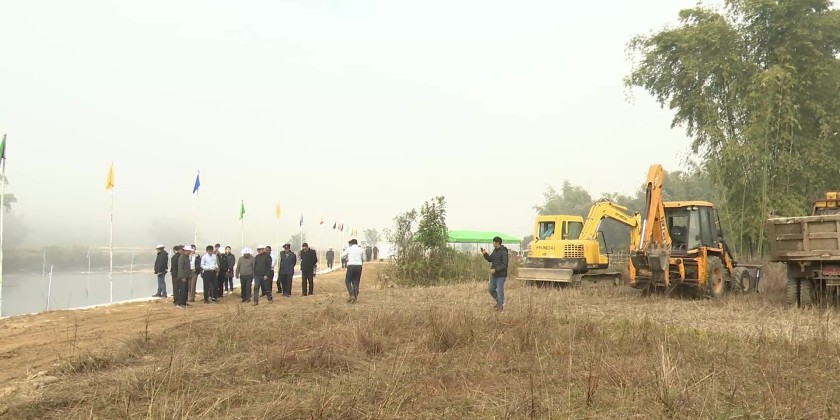 Subsequently, the State Chief Minister and officials inspected a 335-foot-long stone-reinforced retaining wall constructed by the Malihka Brothers Company over the Nam Htun stream flowing near Ho Phai village in the airport ward of Putao Township, reviewing its construction status. They also examined the status of the Ho Phai North Weir.