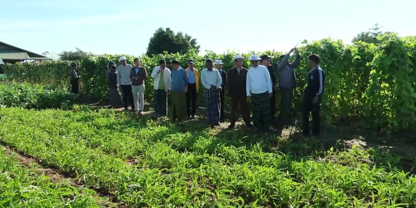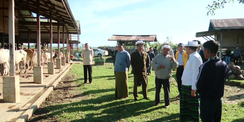 There, the Chief Minister and party visited Field No. 75 of Shwe Aik Field and inspected livestock farm, fish farming, various bean and vegetable plantations and met with the local farmers and growers. Then, the Chief Minister gave words of encouragement and provided medicines for livestock farms. Additionally, the Chief Minister coordinated requirements on accessing agricultural water and electricity, allocation of State Economic Promotion Fund and providing technological assistances for plantations, livestock breeding and fish farming.