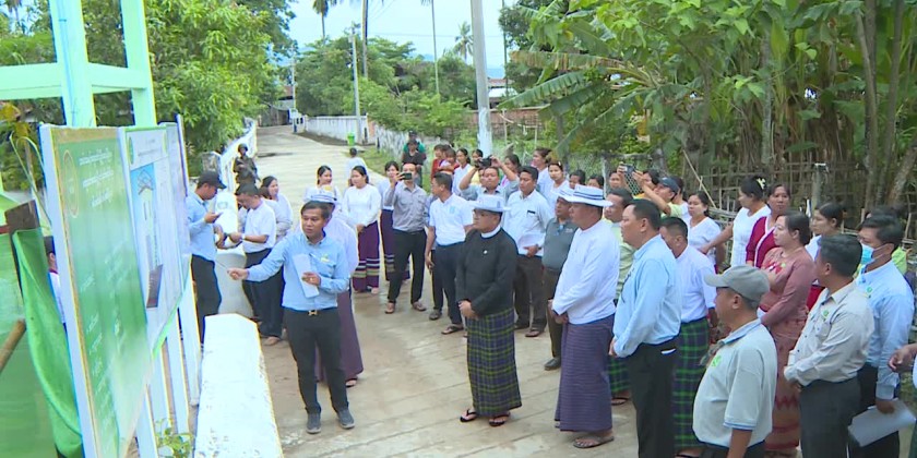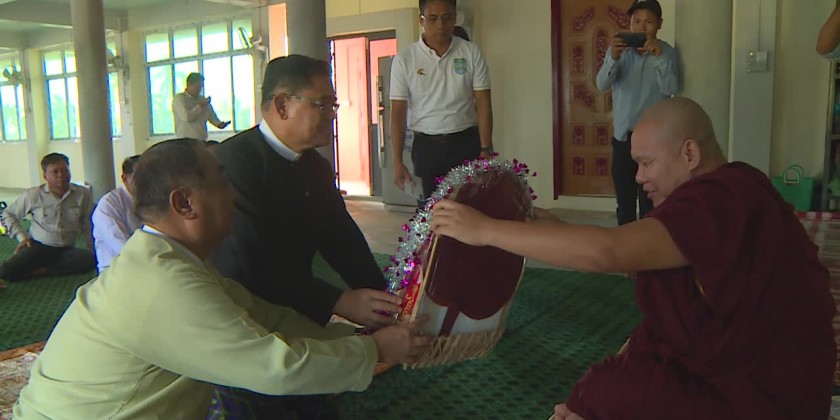 Then, the Chief Minister and party inspected the implementation of library project and construction of water purifying industry and installing pipes in village monastery and donated cash assistance and offertories to the presiding Sayadaw.