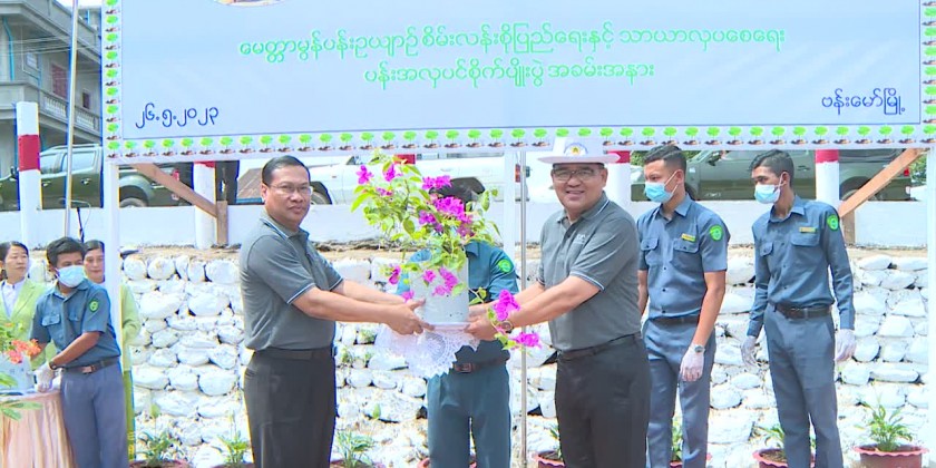 Then, the Chief Minister and party attended the planting ceremony for the greening and beautifying of Myittar Mon Garden in Tharsi Ward of BaMaw Township for the emergence of a beautiful recreational spot for the residents and gave necessary instructions.