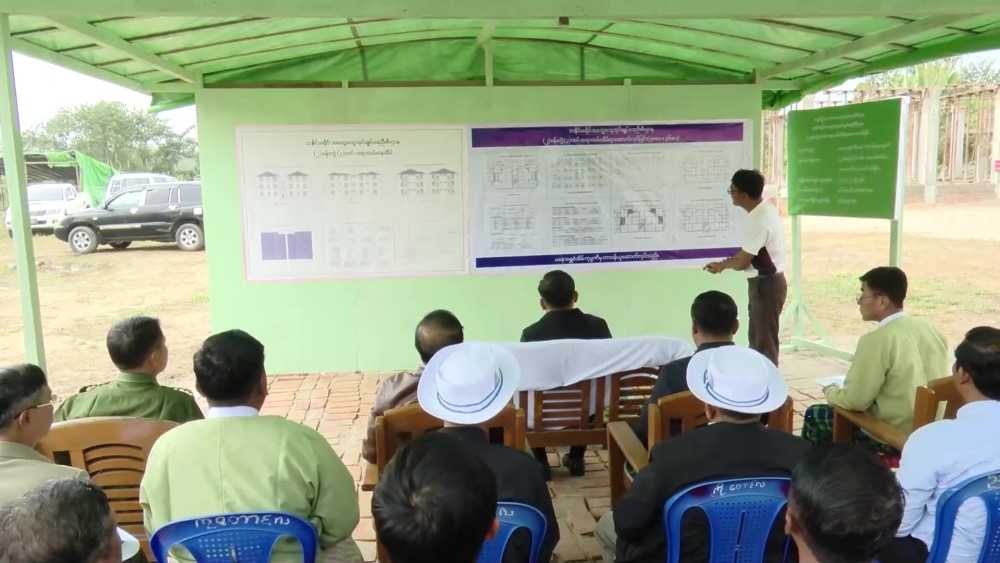 Initially, the Chief Minister, members of the State Government, and departmental officials inspected the construction site of a two-unit apartment, three-story staff housing project within the compound of the Tanai District General Administration Department in Kansara Ward, Tanai Township.