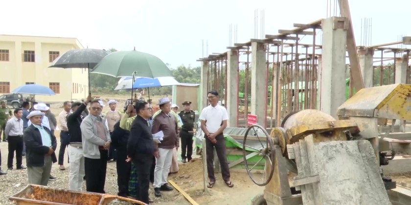 During the inspection, the Chief Minister inquired about and discussed the necessary requirements with the responsible officials from Manaw Shwe San Ein Company, which won the tender for the project. He emphasized the need to complete the construction within the specified fiscal year, adhering to standards and timelines. The officials also examined the progress of the new RCC staff housing construction.