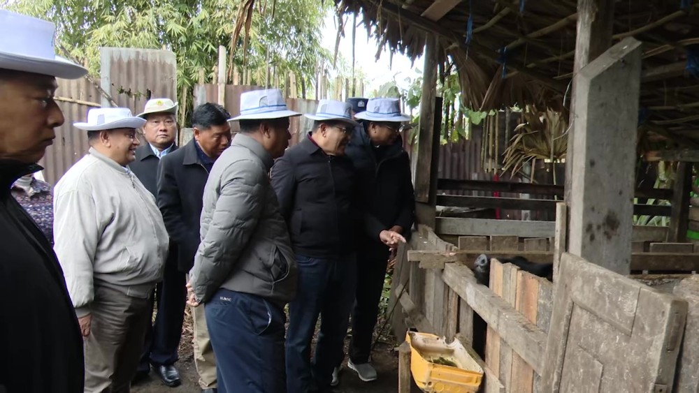 Kachin State Chief Minister U Khat Htein Nan, along with State Ministers and departmental officials, conducted an inspection of agricultural and livestock activities in Nawngmun Township, Putao District, on the morning of March 3.