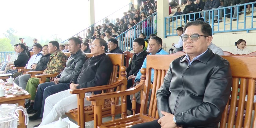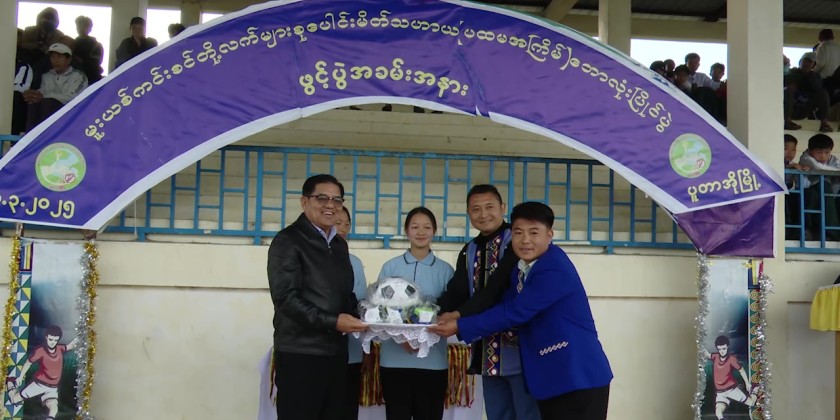 Following this, the Chief Minister attended the opening ceremony of the 2025 Drug-Free Hands Together Fellowship (First Edition) Men Football Tournament at the District Football Ground. He delivered a speech and officially opened the tournament. He also awarded 1 million kyat to the organizing committee and provided funds to the entertainment groups.