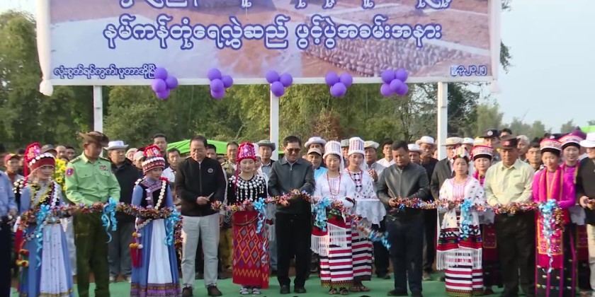 After that, the Chief Minister and party attended the opening ceremony of the Nat Kantone Water Diversion Dam in Lone swut Ward, Putao Township. The ceremony featured traditional dances performed by local ethnic groups, including Rawang, Lisu, Tikhanti and Jinghpaw.