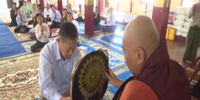 They then donated rice, edible oil and offertories to Sayadaws and monks and shared the merits. The Vice Senior General and party then supplicated religious affairs to the Sayadaws and took Ovada Gatha.