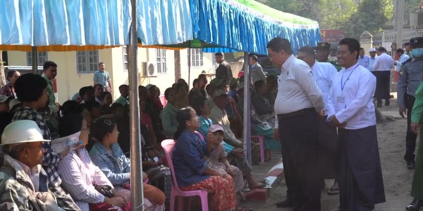 Magway Region Chief Minister U Tint Lwin together with region Ministers and region/district/township level departmental officials inspected the field medical treatment for local people provided by specialists in People’s Hospital of Taungdwin Gyi Township, viewed the rice cultivation using hand-held seeder in the area of Nyan-Taw Inn Solar Power Water Pumping Project in Sin Paun We Township and met with local farmers on Monday morning.