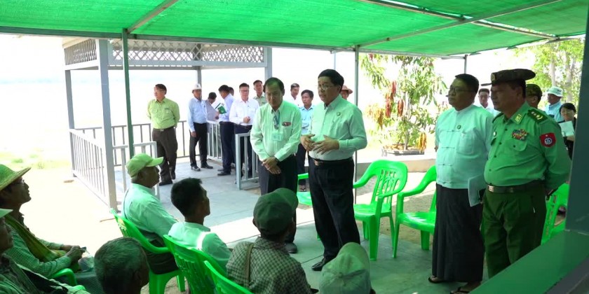 Next, Chief Minister U Tint Lwin and officials arrived at Nyan-Taw Inn Solar Power Water Pumping Project in Sin Paung We Township, and met with officials from the Irrigation and Water Utilization Management Department (Water Resources) and local farmers. During the meeting, the officials from the Department of Irrigation and Water Utilization Management reported the conditions of the project operations and the distribution of agriculture water to the farmers, socio-economic development activities of the people funding by 2023-2024 financial years of Titut Pipeline Base Station's Corporate Social Responsibility (CSR)for social sector.