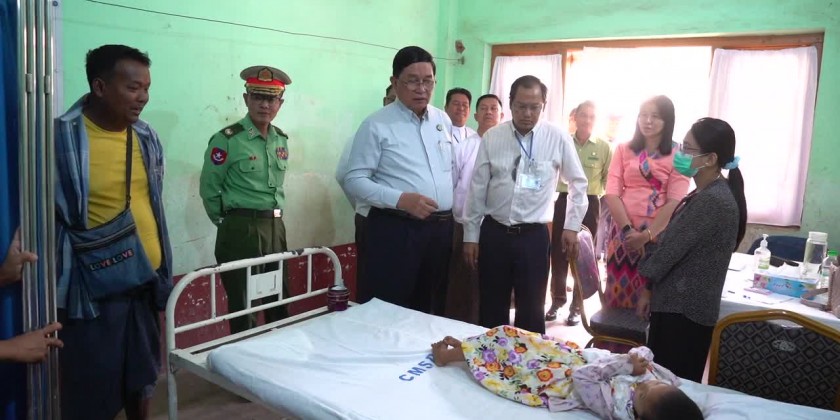 First, Region Chief Minister and officials arrived at People’s Hospital of Taungdwin Gyi Township and viewed round the free field medical treatment for local people provided by the specialists. They also cordially met with patients and provided cash assistance to the medical professors and health workers. There are a total of 624 local people received the free health service in Taungdwin Gyi People’s Hospital organized by the Magway Region Government to reduce the costs of medical treatment.