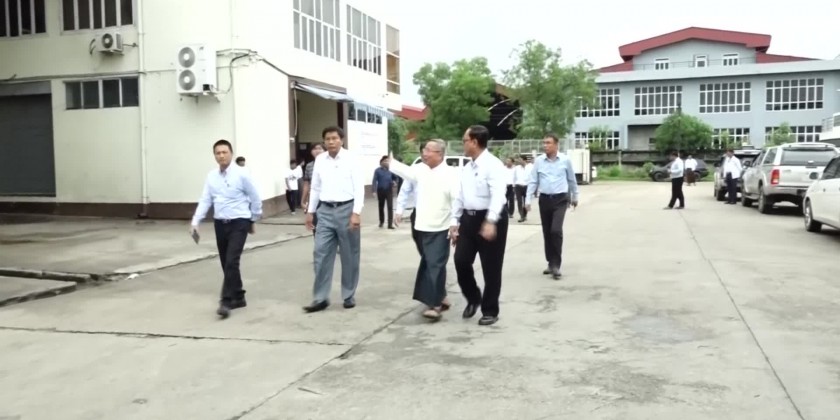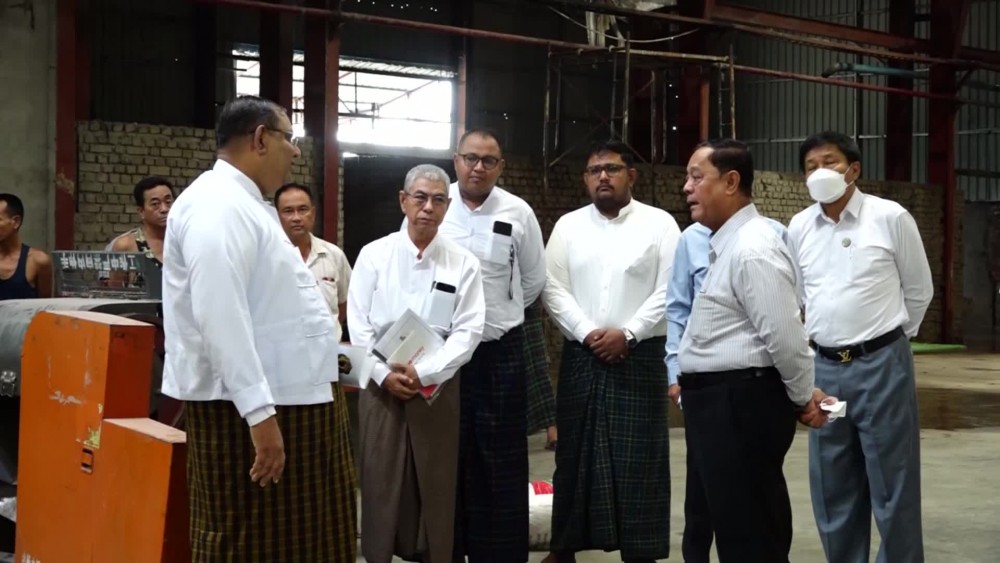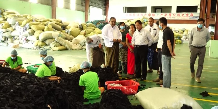 Union Minister and party inspected “Hla” Textile Factory in Dagon Seikkan Township, heard the clarification of the responsible persons of the factory on the work process and the Union Minister gave necessary instruction and coordinated requirements on the reports.