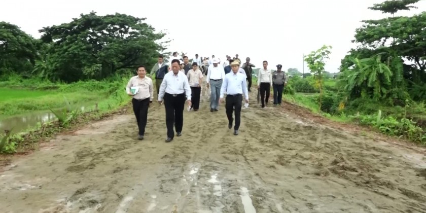 Union Minister for Cooperatives and Rural Development U Hla Moe together with the officials made ground inspection of commodity production and regional development works in Yangon Region in the morning on 23rd June.