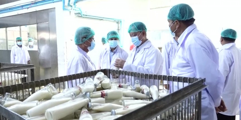 Next, the Union Minister and party inspected PEP dairy products factory, heard the clarification on the factory operation in Video Clip and the Union Minister gave necessary instruction regarding with the producing dairy products.