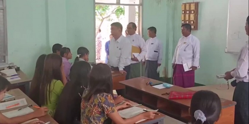 On Tuesday, Union Minister for Education Dr. Nyunt Pe and officials inspected Meiktila University, Meiktila Education Degree College, Basic education schools in Meiktila and encouraged the students studying peacefully.