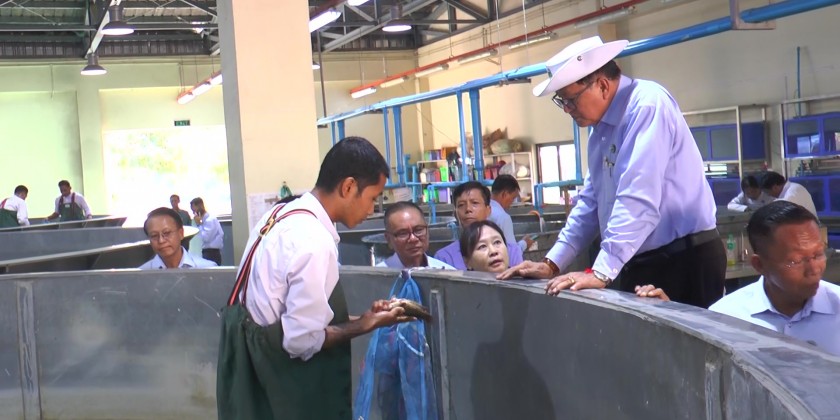 Next, the deputy minster inspected the Thayetkone Fishery Camp in Aung Myay Thazan twonship where also the officials concerned reported the fish hatchery matters, conducting research on fish breeding and producing aquatic products.