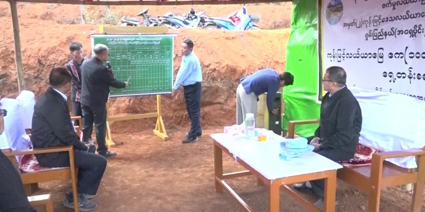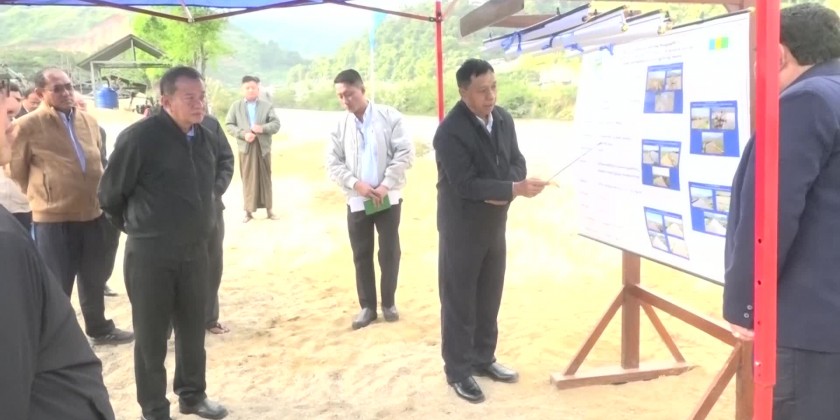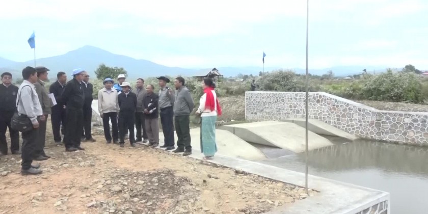 Next, the constructions of office building for the department of Irrigation and water utilization management (water resource) and staff housing (district office) IWUMD were inspected. Next, the Deputy Minister inspected dragging of Namt Tin Creek to protect the farmland of agricultural research farms in Kengtung Township, water distribution building and upgrading of water distribution canal and development of hill farmland and gave necessary instructions to the responsible officials.