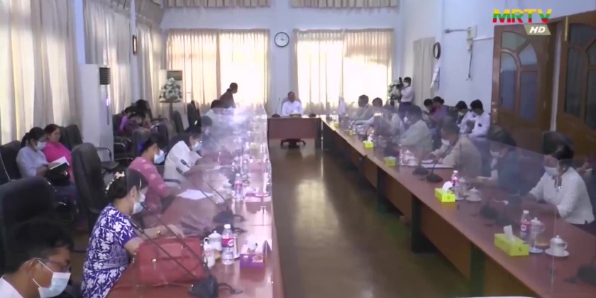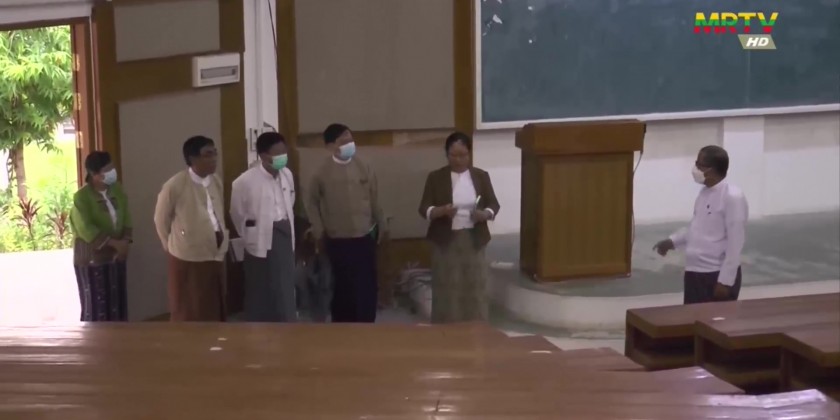 First, the union minister met with the permanent secretary, director-generals, rectors and faculty members at the meeting room of Yezin Agricultural University and the rectors of Agricultural University and University of Veterinary Science clarified the accepting the enrollment of the students and the holding capacity of dormitories and class rooms and the arrangements for the teaching and learning safely in line with the health directives.