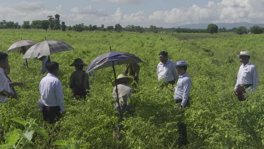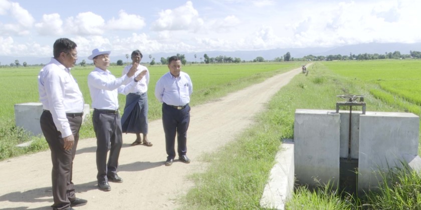 On September 28th, Union Minister U Min Naung and concerned officials conducted field inspections of water pumping station, irrigation canals and crop fields in Shar Taw, Gwe Pin, and Ye Aye as part of these efforts. The Union Minister and party commenced their visit at Shar Taw Village, observing farmers engaged in harvesting pepper. There, he inquired about agricultural productivity and farmers' income, offering encouragement. They then inspected damage status of solar-powered water pumping station.