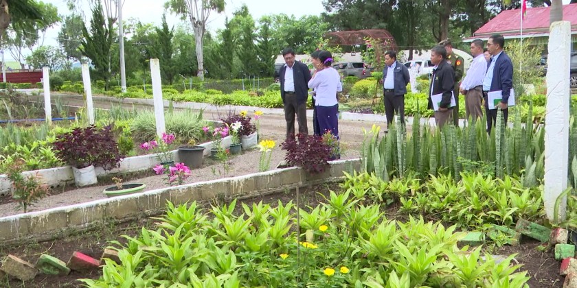 The Union Minister for Agriculture, Livestock and Irrigation U Min Naung currently in Shan State to fulfill the requirements, for the development of agricultural products of Shan State, upgrading the agricultural research sector and increasing number of agriculture and livestock breeding based mid-level vocational skillful professionals, inspected Kalaw Township Department of Agriculture, gardening farm, vegetable and plan biology center (branch) and the work implementations of Heho Gardening farm in the morning on September 1st.