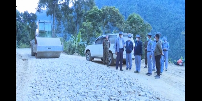 Next, the union minister and party inspected the status of maintaining the road constructed along the Naung Mon-Ma Gwe Za-Khaung Lan Phu Road and the repairing and maintaining works of gravel road, bridges, Stream culverts and instructed to complete in time and to meet quality standards.
