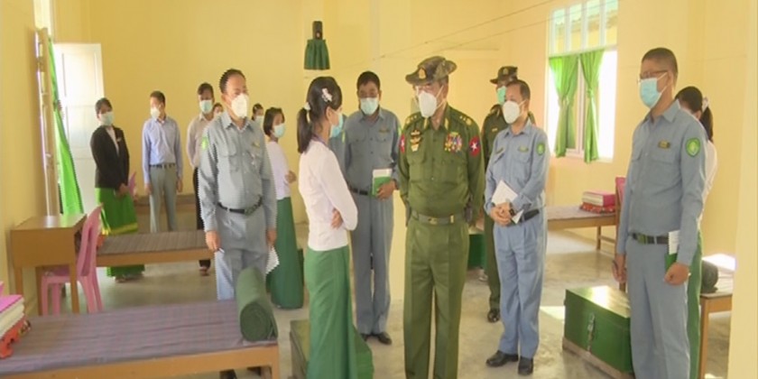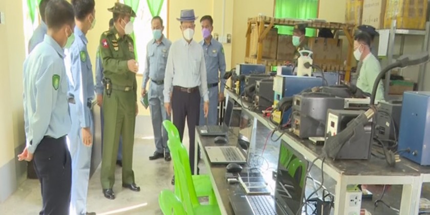 On 26 November, the Union Minister and party visited cottage vocational training school for women in Pathein Township, tended requirements and gave necessary instruction to the staff and instructors. Then, he inspected dormitory, mess hall, class rooms, library, staff housing and construction projects.
