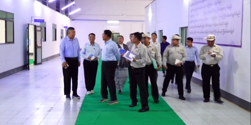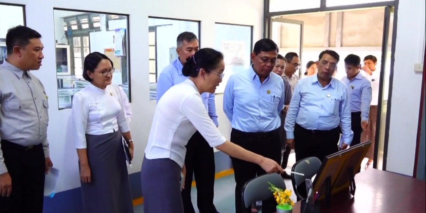 The Union Minister later inspected the Quality Control Research Division under the Bridge Department and instructed to supervise the testing of construction materials to meet the standard and to maintain the laboratory equipment systematically. Then, the Union Minister and party inspected the maintenance of Yangon – Nay Pyi Taw road section along the Yangon – Mandalay express way and the reconstruction of Swa Creek Bridge.