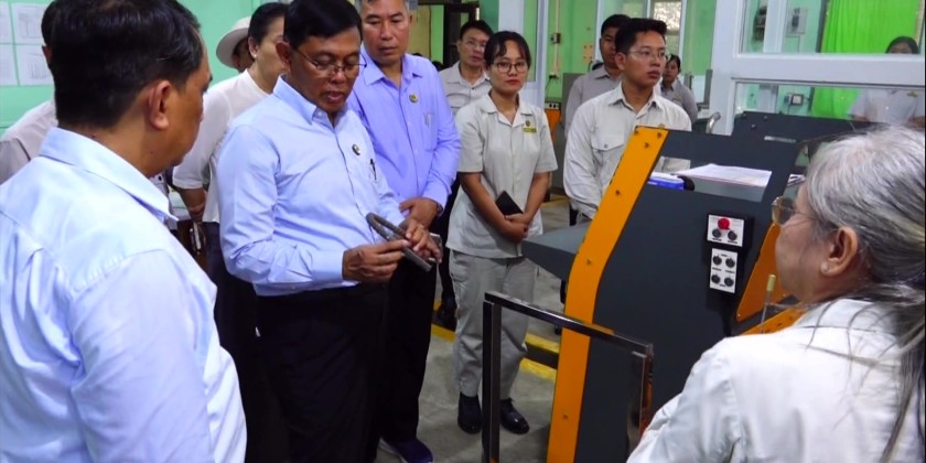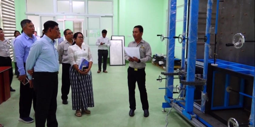 The Union Minister and party then inspected the library including library management system and arrangements for convenient access of e-book. At the Quality Control Research Division under the Road Department, officials reported on status of testing stability and flow of road design as well as for soil and asphalt quality.