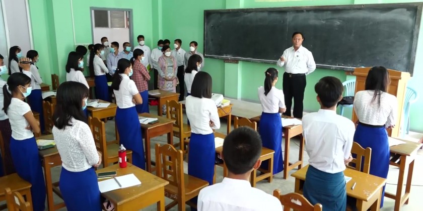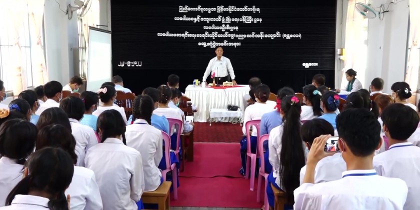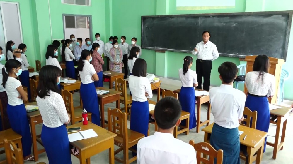 At the Cooperative bookkeeping and accounting vocational training school in Aung Myay Tharzan Township, the union minister met with the instructors and the trainees, explained the vocational skill of bookkeeping and accounting, urged to work hard in learning, inspected the school building and dormitories and fulfilled the needs for the students.