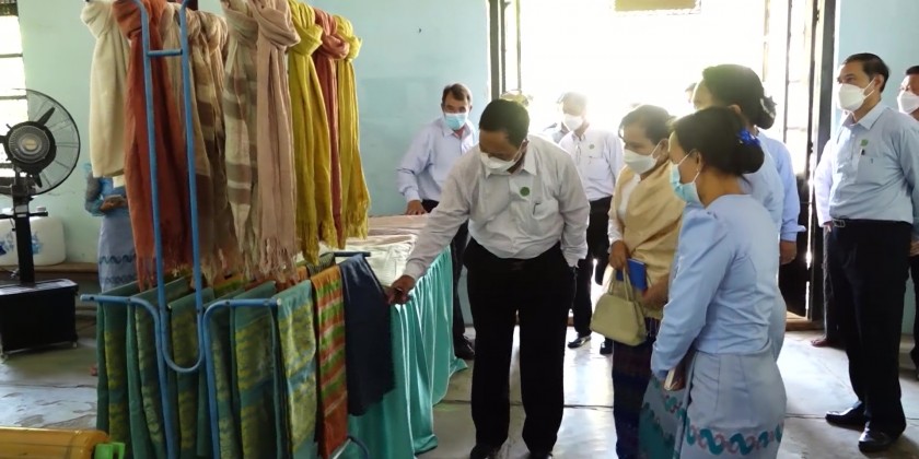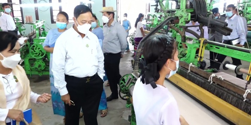 Next, the union minister and party arrived at the Saunders Weaving and Vocational Institute in Amarapura Township and the principal clarified the trainings courses given by the institute and the union minister coordinated necessaries for the trainees.
