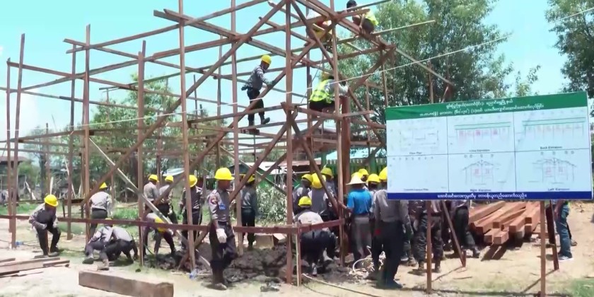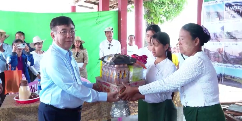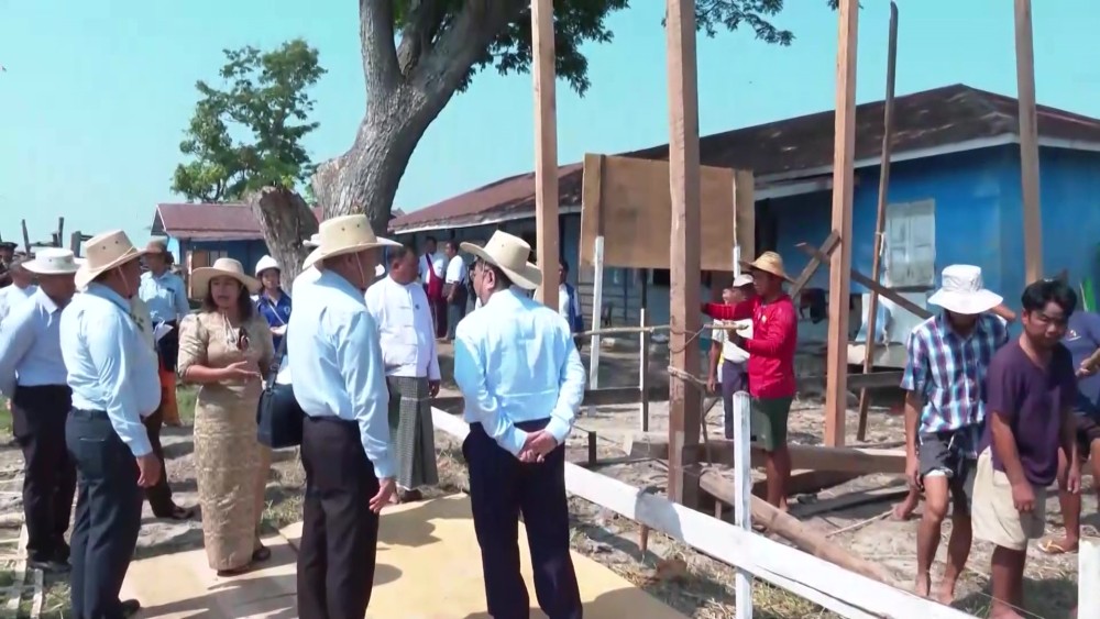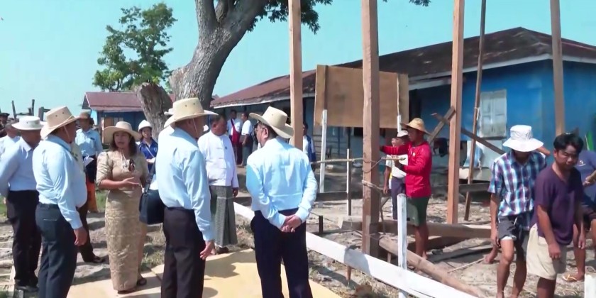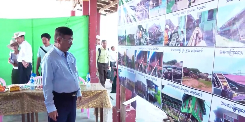 The Union Minister began by inspecting schools in the Inlay area that were damaged by the powerful Mandalay earthquake on March 28. He assessed the structural damage to school buildings and classrooms, as well as ongoing efforts to construct temporary classrooms ahead of the June school reopening.