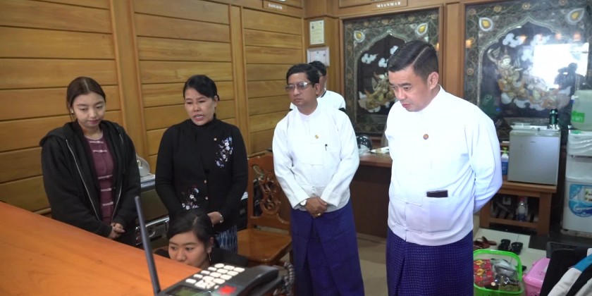 Then, the Deputy Minister visited Shwe Nan Htaik Hotel, inspected work operation and status of travelers lodging and coordinated requirements.