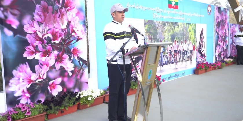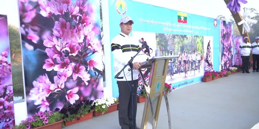 In the morning on 4th February, Mandalay Region Chief Minister U Myo Aung and Deputy Minister U Phyo Zaw Soe attended and gave the speech at the opening ceremony of Pyin Oo Lwin Region Rural Bicycle tour 2024 co-organized by the Ministry of Hotel and Tourism and Mandalay Region Government and the Chief Minister U Myo Aung kicked off bicycle ride with a gun fire.