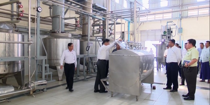 Then, the Union Minister gave a speech of conclusion. After that, the Union Minister and Chief Minister visited Mya Bayin condensed milk factory in Kyaukse Township, heard the clarification of the factory owner U Win Maung regarding with the production process from the raw materials to the finished products and the Union Minister and party inspected the production process.