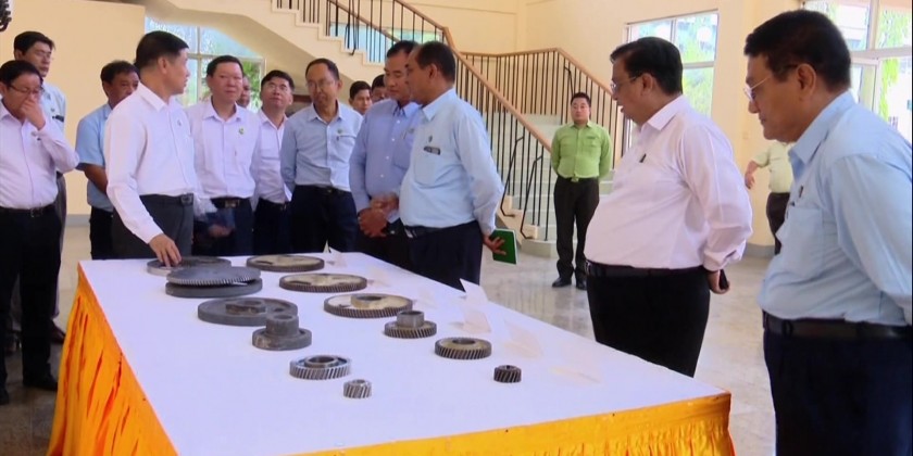 At the Myanma Agricultural Machinery Factory (Ingone), the Union Minister expressed words of thanks for the manufacturing of pinions for two rollers installed cotton blending machine, requested to manufacture other machinery parts and viewed the manufacturing pinions for the cotton blending machines.