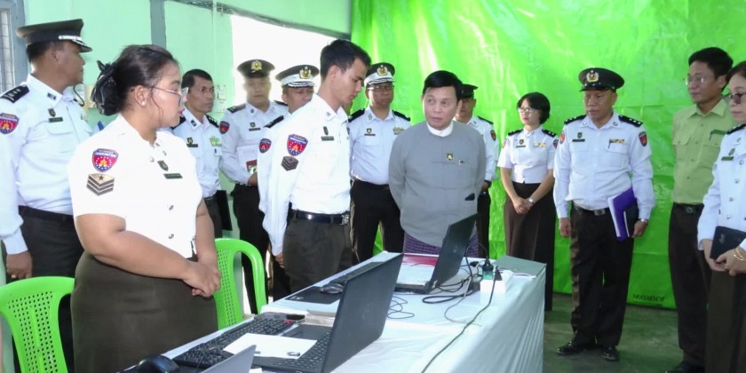 He called for all-round cooperation of all local authorities and departmental organizations for work completion.Next, the Union Minister visited the District and Township officer’ offices of the Ministry of Immigration and Population. During the visit, he inspected the offices, the orderly maintenance of office documents and personal files in the record room and work operation.