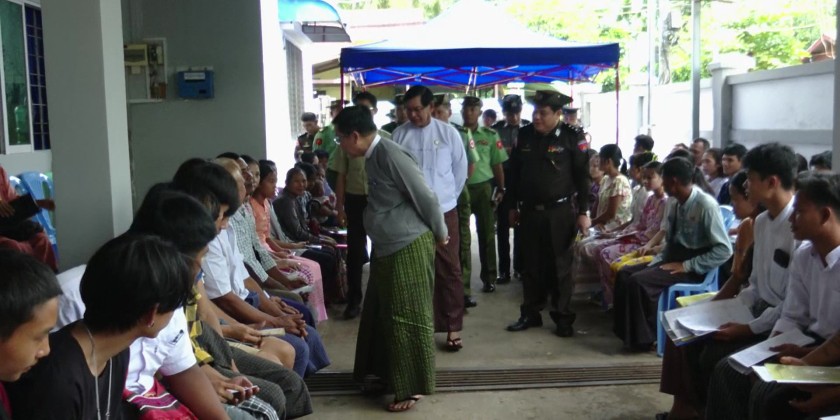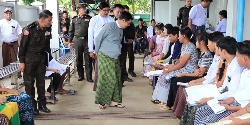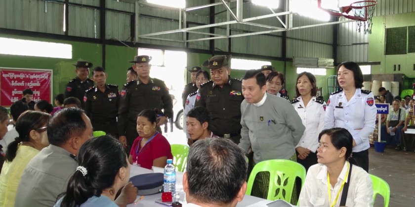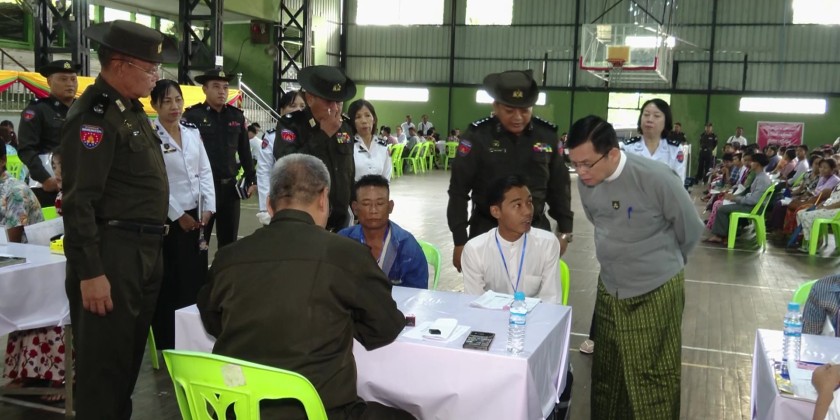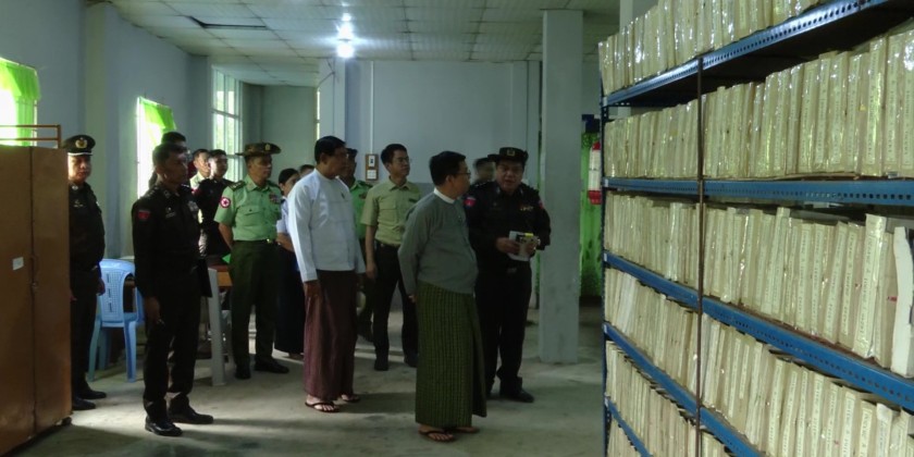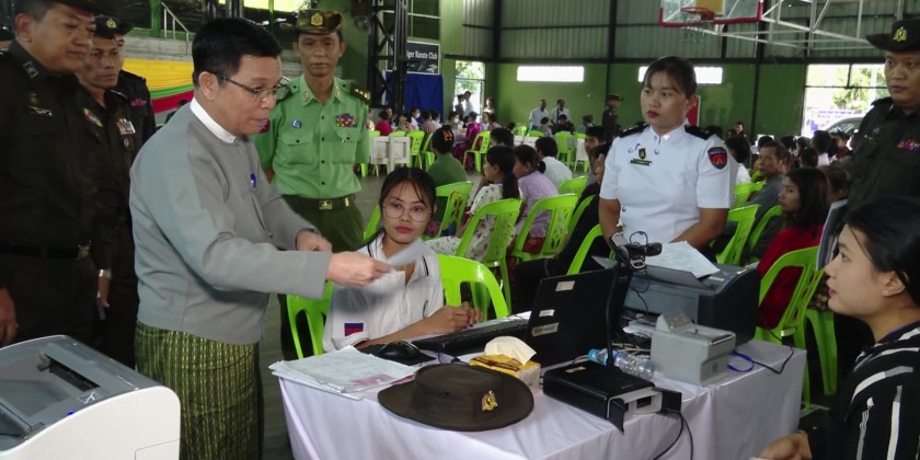 At the hall, the Union Minister observed and encouraged the staff who were implementing the Pan-Khin Project (Phase 3) to assist local residents whose household population lists and citizenship scrutiny cards were damaged/lost, as well as those who had not yet received their citizenship scrutiny cards. He also observed the step-by-step process carried out by the staff through a One Stop Service to issue household population lists and citizenship scrutiny cards.