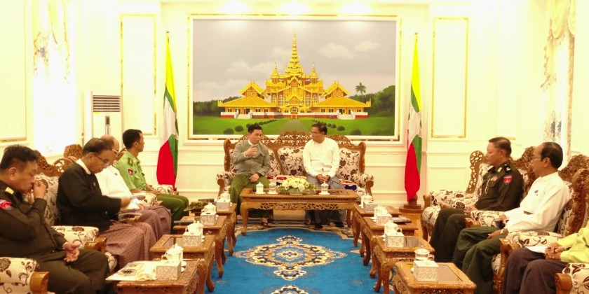 Later, the Union Minister met with the Region Chief Minister and officials in the meeting hall of the Hlegu District Head Officer’s Office. They discussed and coordinated matters related to ensuring the accuracy of the confirmed population list for the correctness of the voter list, enabling all eligible voters to possess at least one type of identity card to cast their vote, and the scrutiny processes for candidates representing various parties.