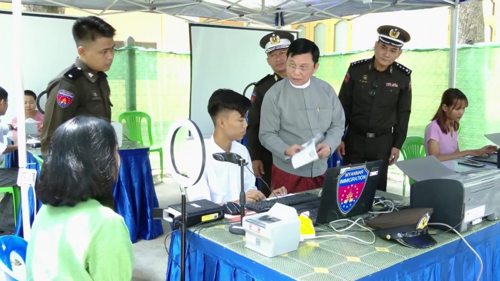 Union Minister for Immigration and Population U Myint Kyaing together with the officials visited Maha Aungmyay Township office under the Ministry, oversaw the collecting Biographic and Biometric data for those who have received Citizenship Scrutiny Card (CSC) and issuing 10 digits of Unique ID, gave necessary instruction on the clarifications of the responsible officials and coordinated requirements.
