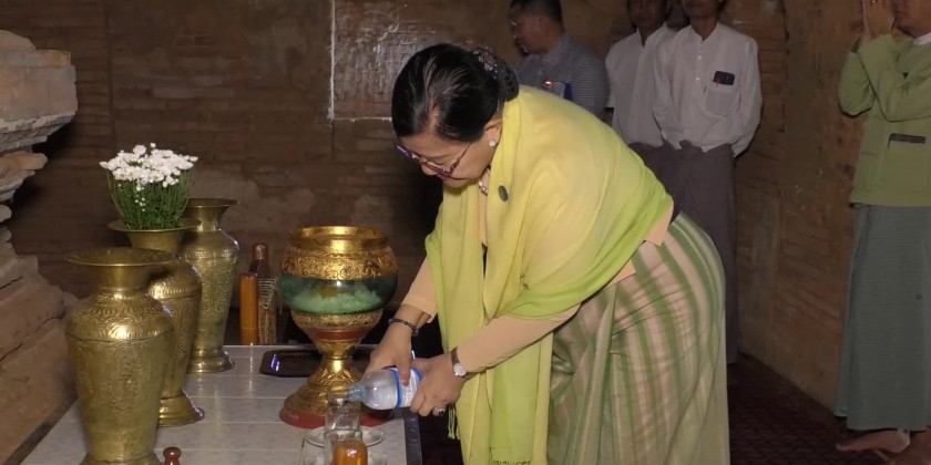 The Deputy Minister for Religious Affairs and Culture, Daw Nu Mra Zan, together with officials from the Department of Archaeology and National Museum, visited and inspected the preservation and maintenance of ancient stupas and temples in the Bagan Archeological heritage Zone of Mandalay Region, as well as the installation of lightning protection measures in the morning of November 17.
