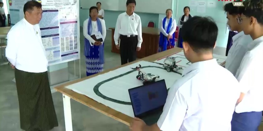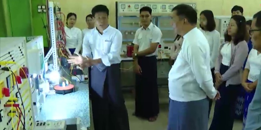 On arrival at Myanmar Institute of Information Technology in Mandalay, the Union Minister inspected the renovation of main building and learning condition of the students.