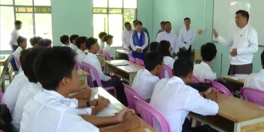 In the afternoon, the Union Minister and party visited the University of Computer Studies (Mandalay), and inspected the learning condition of the students at newly constructed classrooms, computer rooms, offices and preparation for football and futsal courts.