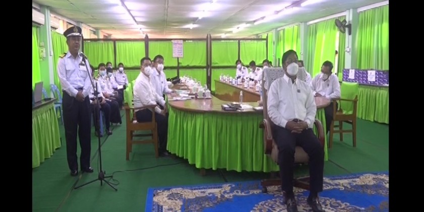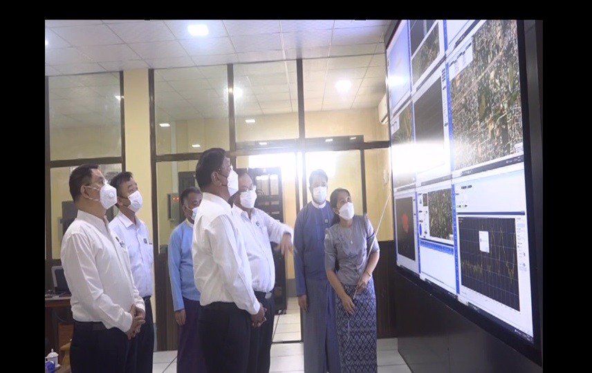 First, the Union Minister inspected the Radio Frequency Measurement Base Station (South Dagon) in Dagon Myothit (South) Township. There, he called on officials to ensure that the frequency bands do not interfere with each other and stressed the importance of no illegal frequency bands users, systematic record of data on frequency usage, long-term use of equipment, safety and full staff capacity.