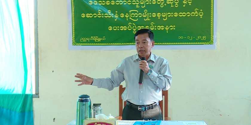On December 11th, Nay Pyi Taw Council Chairman met with farmers and attended the ceremony of providing sunflower and sunn-hemp seeds at Pa Ywat Sate Kone Village in Pyinmana Township. On the occassion, the Coucil Chairman delivered a speech and then provided Sinn Nay Kyar (2), Sunn-hemp, Trichoderma fungi and fertlizers to the farmers.