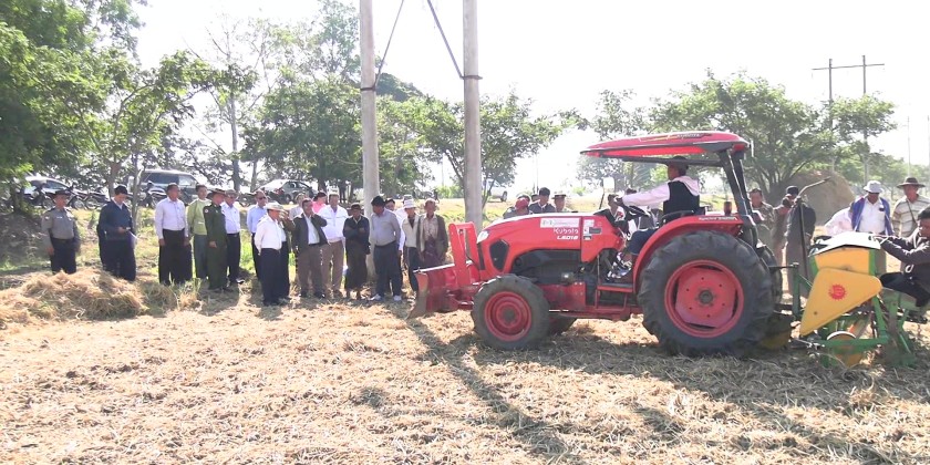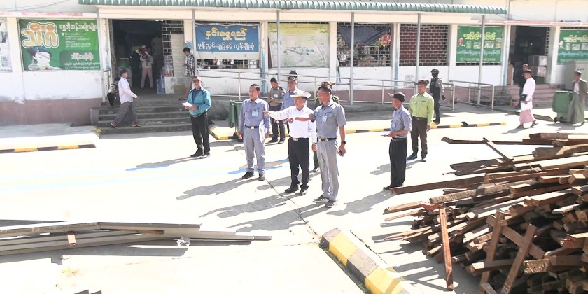 Next, he inspected the knowledge sharing session and demonstration of MEVM at Thit LayLone Village in Pyinmana Township. After that, he inspected the seeding process of winter sunflower within 5 acres of farmland in the village. The Council Chairman also looked into the renovation of Nay Pyi Taw Myoma Market which were affected by Mandalay earthquake and opening of shops as well as construction of 600 sq-ft 4-room staff housings in Thuka Theikkdi Ward of Zabuthiri Township.