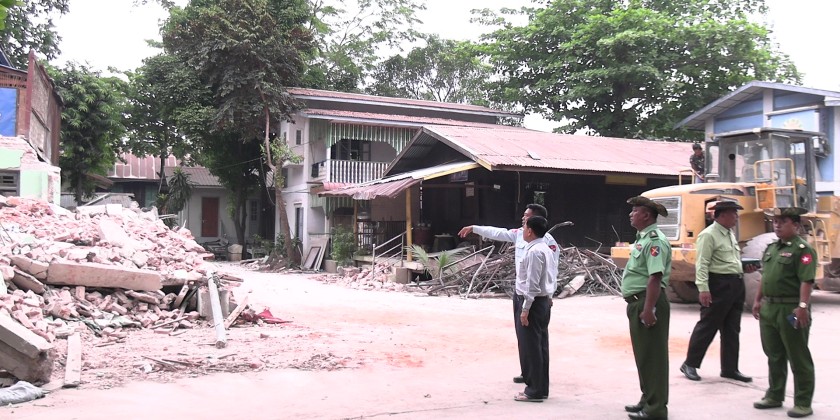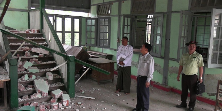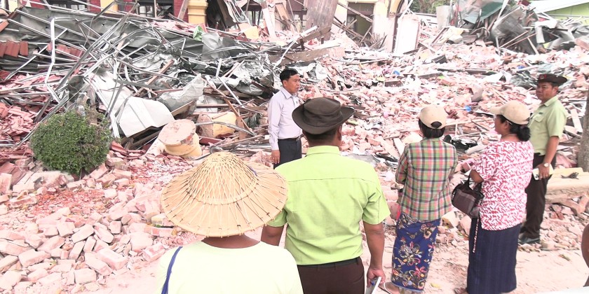 Later, the Nay Pyi Taw Council Chairman visited No. (1) Basic Education High School in Pyinmana, the Institure of Agriculture and Livestock, and No. (3) Basic Education High School, which were damaged by the earthquake. He assessed the destruction and distributed food supplies to those affected.