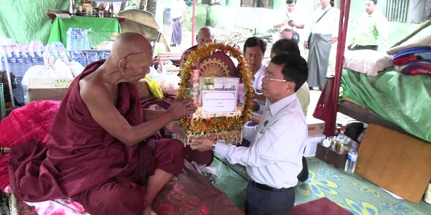 Nay Pyi Taw Council Chairman U Than Htun Oo visited several monasteries in Pyinmana in the morning on March 7, including Khemathiwun Monastery in Shwe Chi Ward and Ngwe Taung Monastery and Zeyyathein Monastery in Mingalar Ward. He offered cash donations and other religious items to the presiding Sayadaws and inspected the earthquake damage to the monasteries. He also observed the ongoing clearance and restoration efforts being carried out by military personnel and gave necessary instructions.