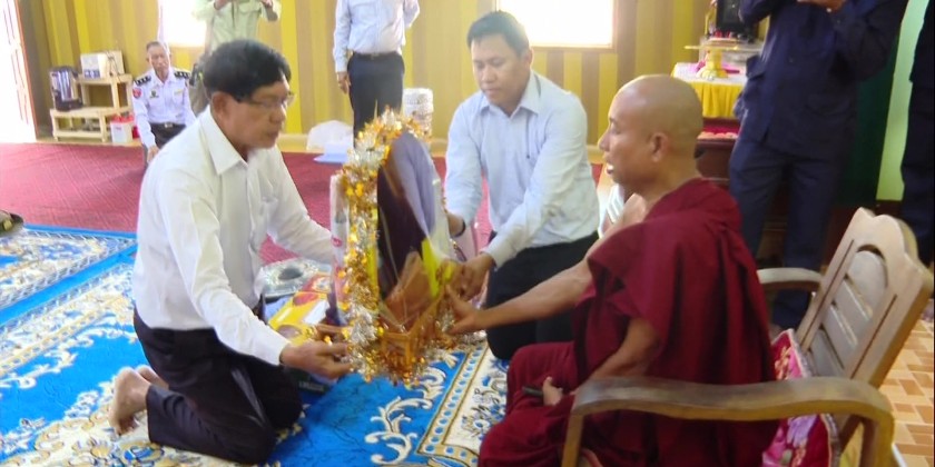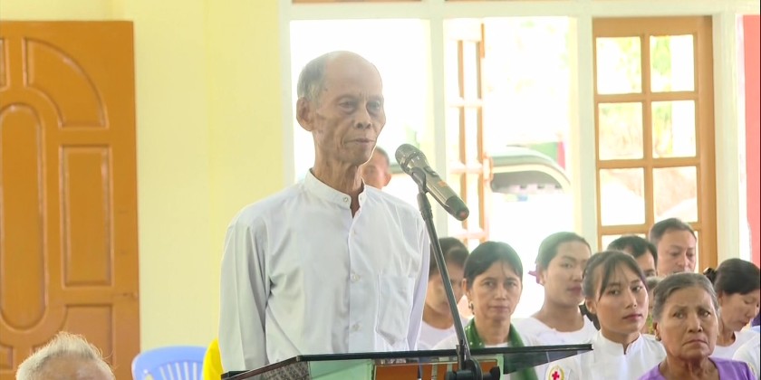 After the meeting, the Prime Minister cordially greeted the local residents who attended. Following this, the Prime Minister and officials paid homage to the Presiding Sayadaw of the Thathana Mandaing  monastery and offered donations.